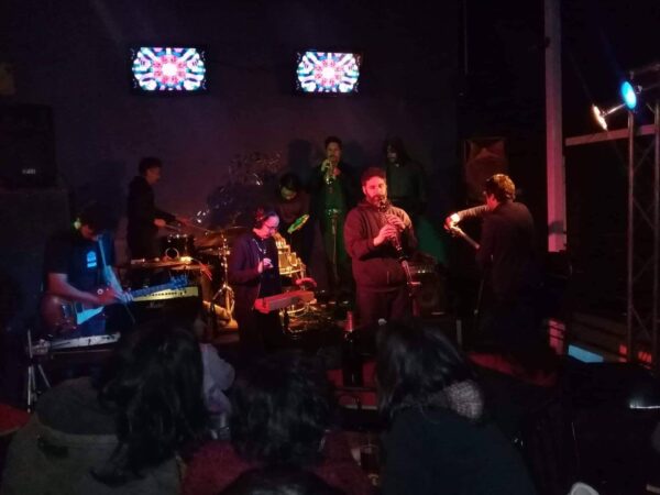 Improvisación grupal realizada en el Café Trabalenguas, en la ciudad de Valparaíso, donde se combinan la música experimental, el movimiento y la alteración de sonidos.