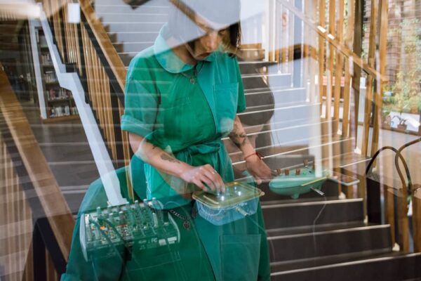 Presentación en directo del videoarte que acompaña a la obra «Placenta» perteneciente al disco «Subaqua corpórea» realizado en 2022, inspirado en un viaje submarino, realizado con la máquina que la artista diseñó para sus presentaciones en vivo. Su estética sonora Low-fi ha sido editada por el sello Homeless Low Fi, dónde se puede disfrutar de un juego armónico de osciladores que marcan juegos sonoros espaciales en combinación de juegos y perillas, donde una base se mantiene, y las anteriores van alternando sus ritmos de subida y bajada, en ocasiones dejan muestras clásicas de osciladores tradicionales. En ocasiones generan guiños orgánicos de submarino o de las pulsaciones de un corazón. Este trayecto se va alternando con la acción de las visuales que ofrece un lenguaje marino de seres y plantas que conviven con la nave al llegar a su destino.